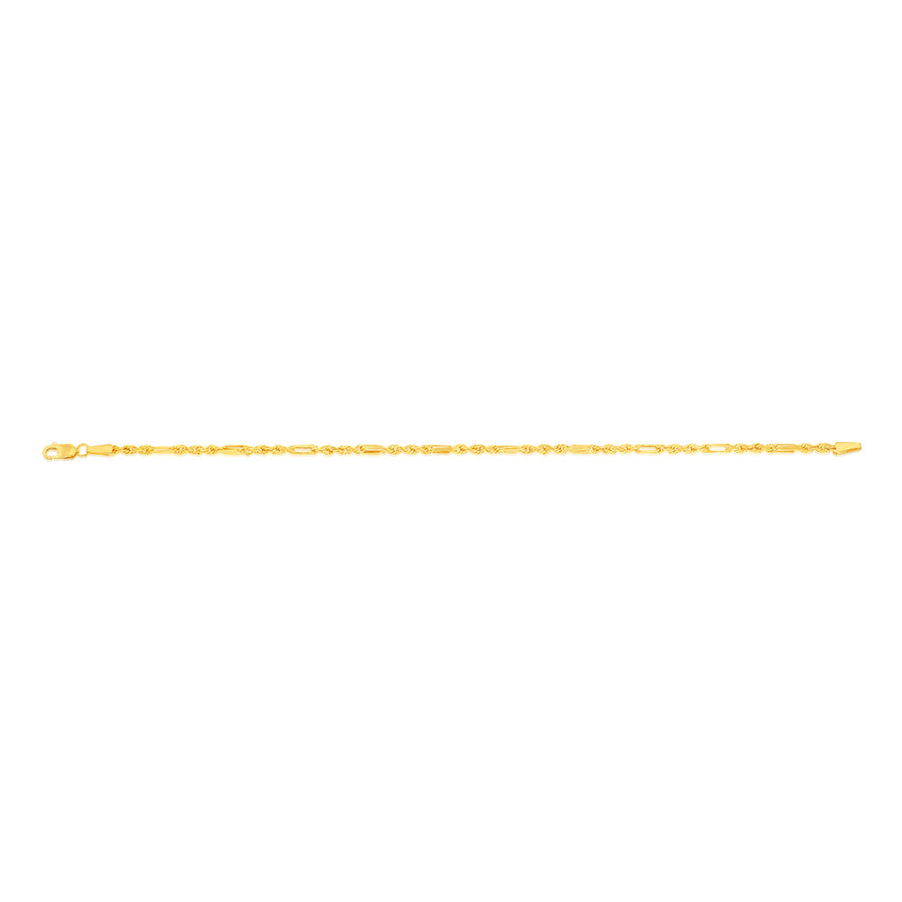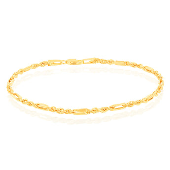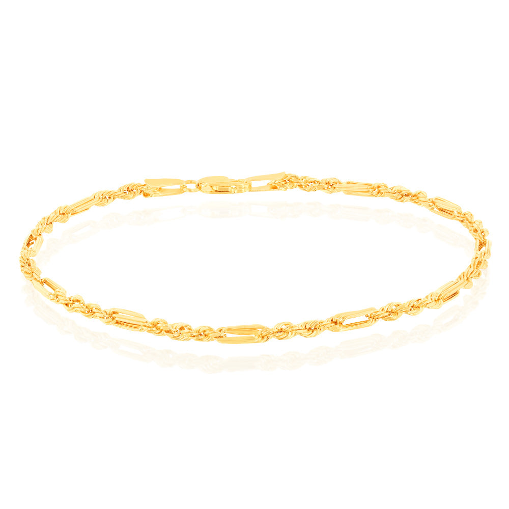 9ct Yellow Gold Hollow Diamond Cut Figarope 18.5cm Bracelet