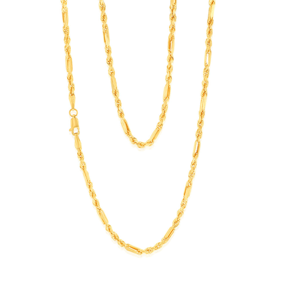 9ct Yellow Gold Hollow Diamond Cut Figarope 46cm Chain