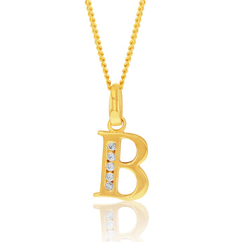 9ct Yellow Gold Initial B Zirconia Pendant