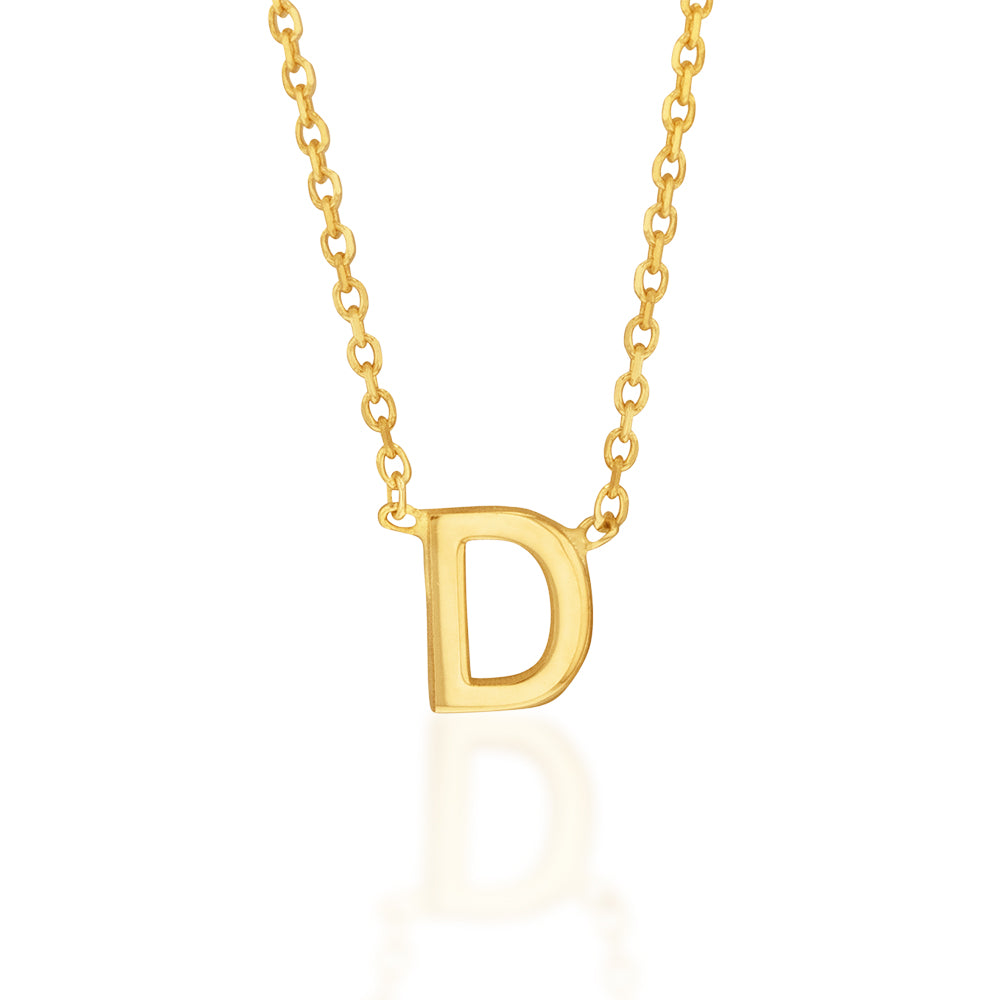 9ct Yellow Gold Initial "D" Pendant on 43cm Chain