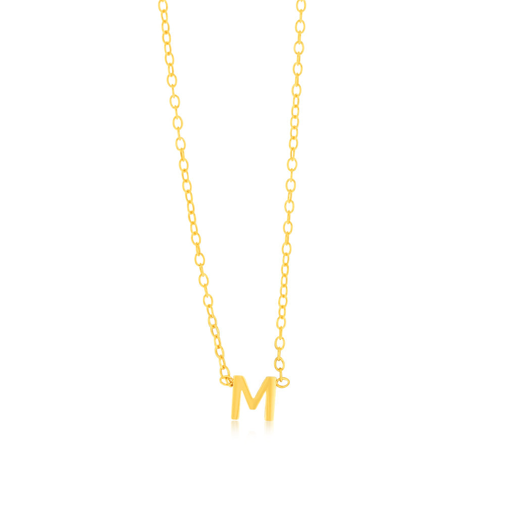 9ct Yellow Gold Initial "M" Pendant On Chain