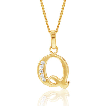 9ct Yellow Gold Initial Q Zirconia Pendant