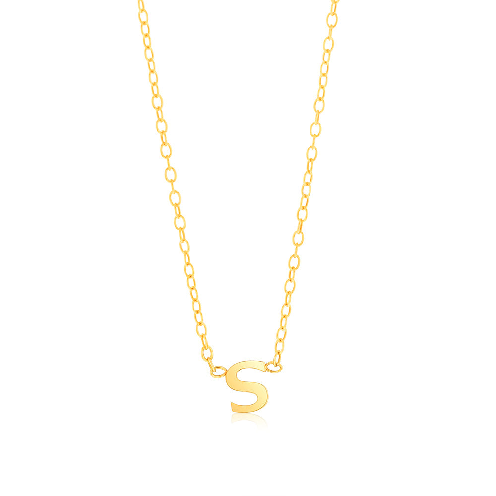 9ct Yellow Gold Initial "S" Pendant On Chain
