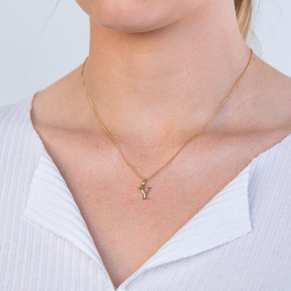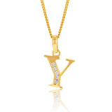 9ct Yellow Gold Initial Y Zirconia Pendant