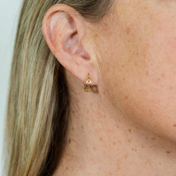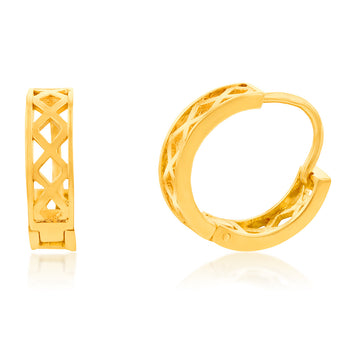9ct Yellow Gold Inner Fretwork 10mm Huggies Earrings