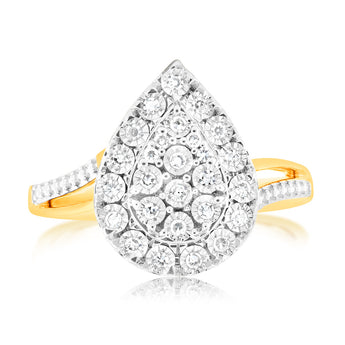 9ct Yellow Gold Lab Grown Pear Shaped Ring With 27 Brilliant Diamonds