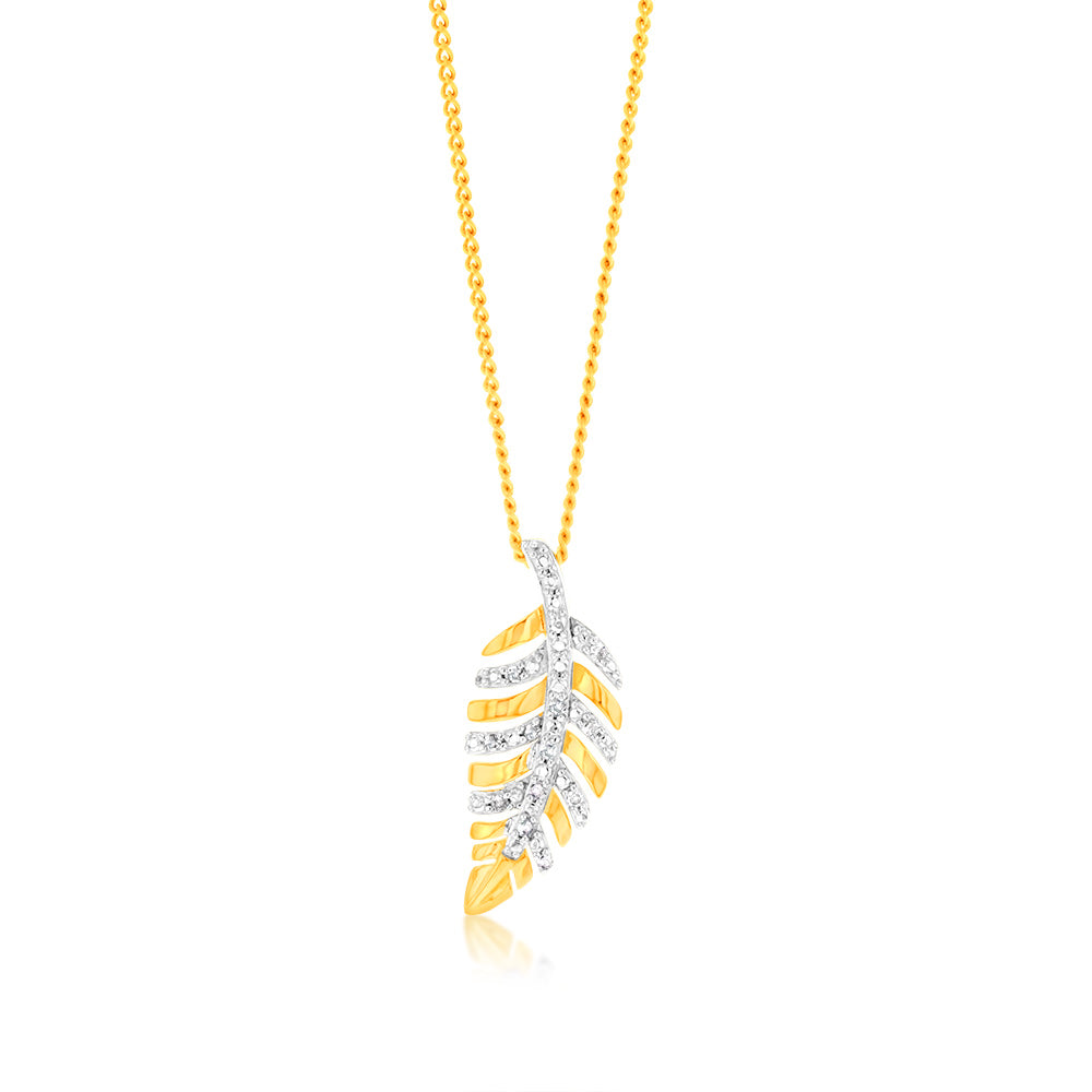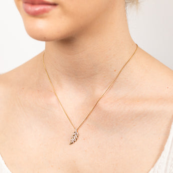9ct Yellow Gold Leaf Shaped Diamond Pendant