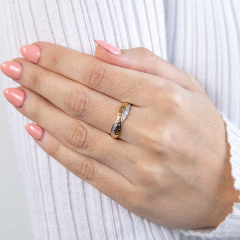 9ct Yellow Gold Love Crossover Ring with 4 Diamonds