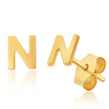 9ct Yellow Gold Mini Initail "N" Stud Earrings
