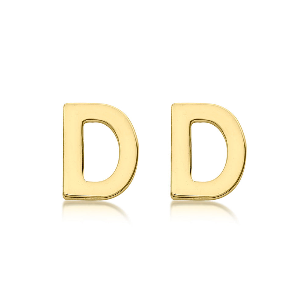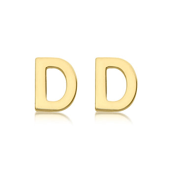 9ct Yellow Gold Mini Initial "D" Stud Earrings