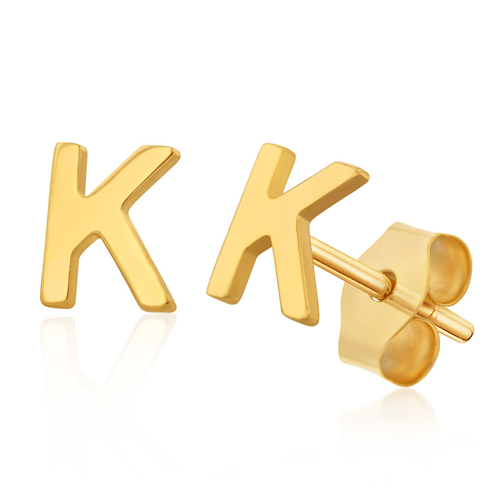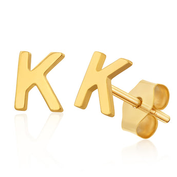 9ct Yellow Gold Mini Initial "K" Stud Earrings