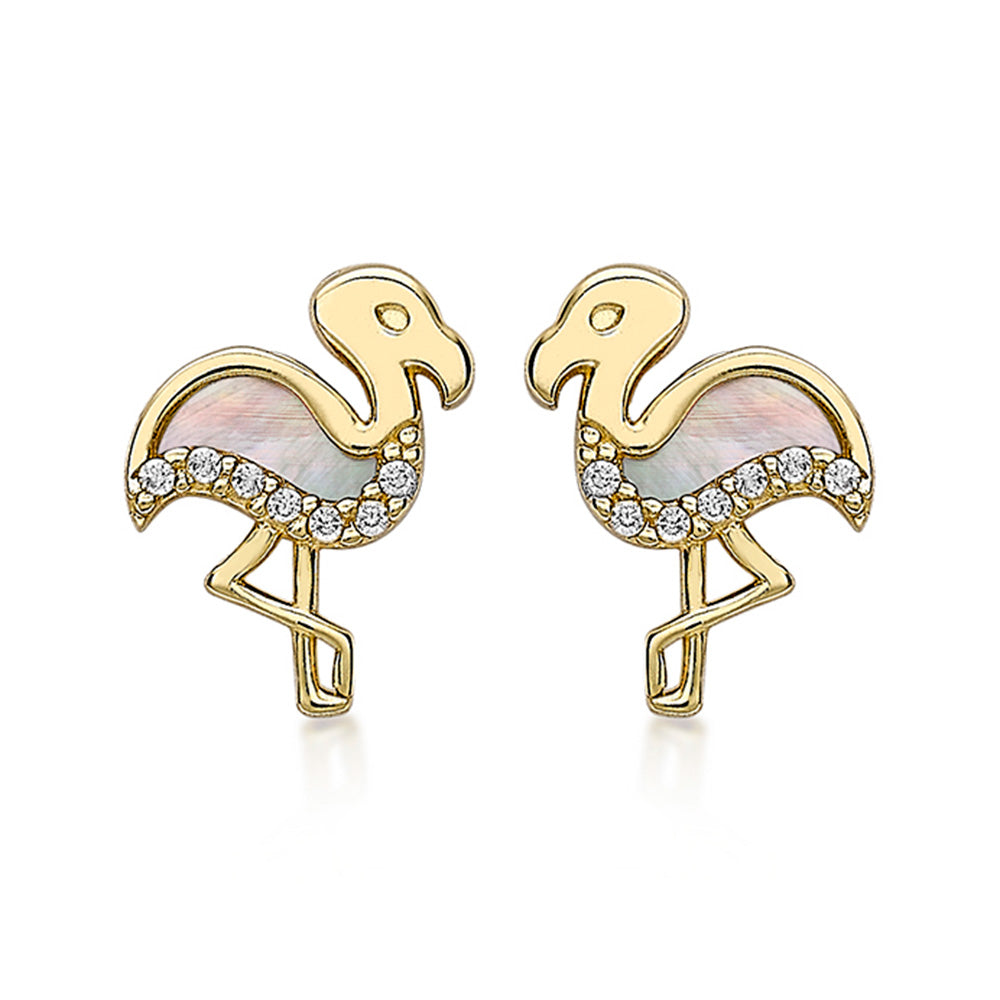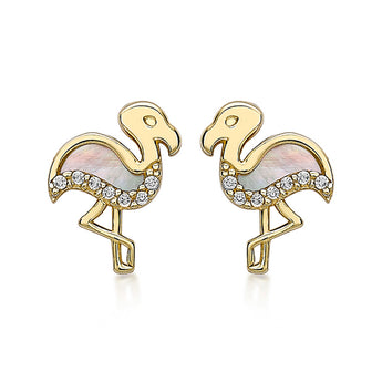 9ct Yellow Gold Mother of Pearl Flamingo Studs