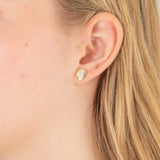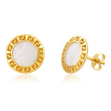9ct Yellow Gold Mother Of Pearl Greek Key Disc Stud Earrings