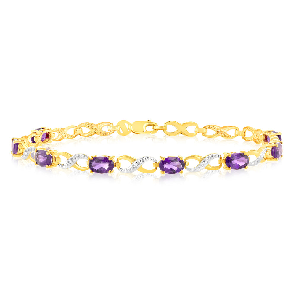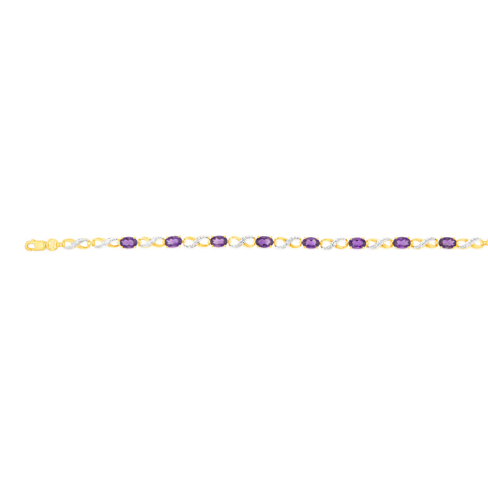 9ct Yellow Gold Natural Amethyst & Diamond Infinity Bracelet
