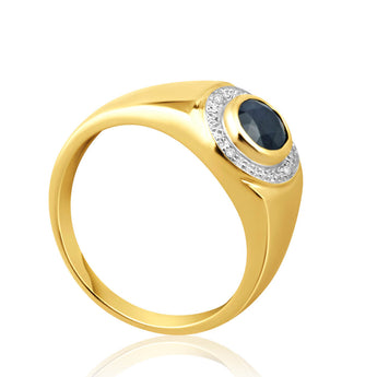 9ct Yellow Gold Natural Black Sapphire + Diamond Gents Ring