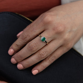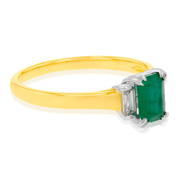 9ct Yellow Gold Natural Emerald and Diamond Emerald Cut and Baguette Ring