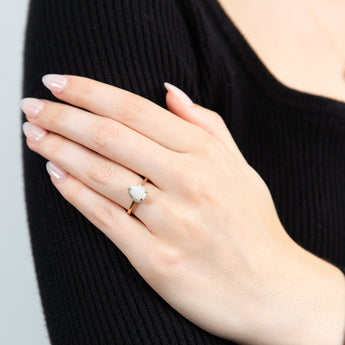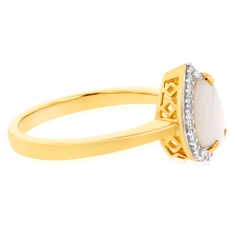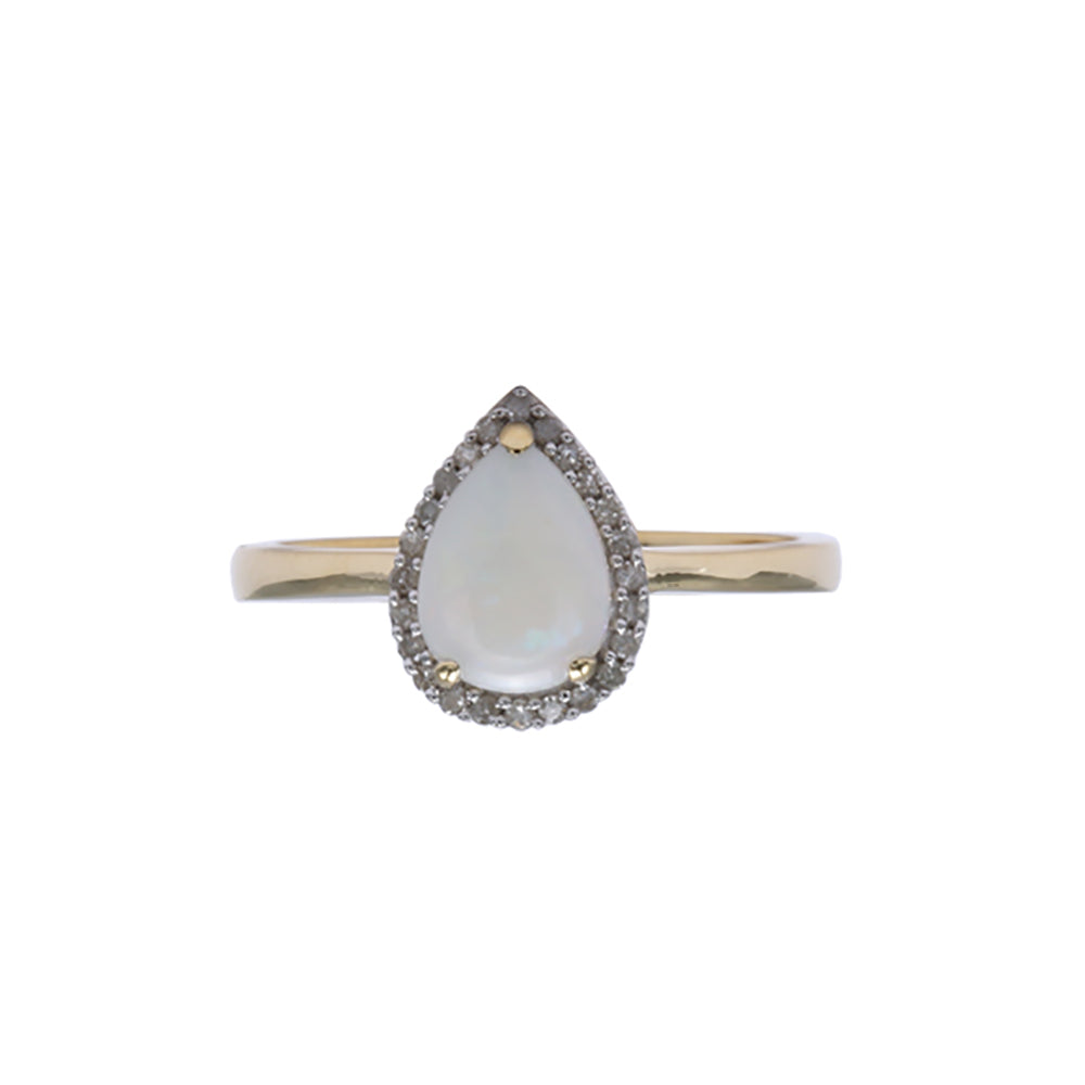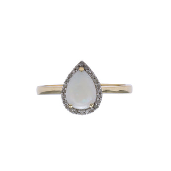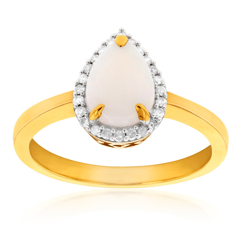 9ct Yellow Gold Natural White Solid Opal & Diamond Pear Shape Ring