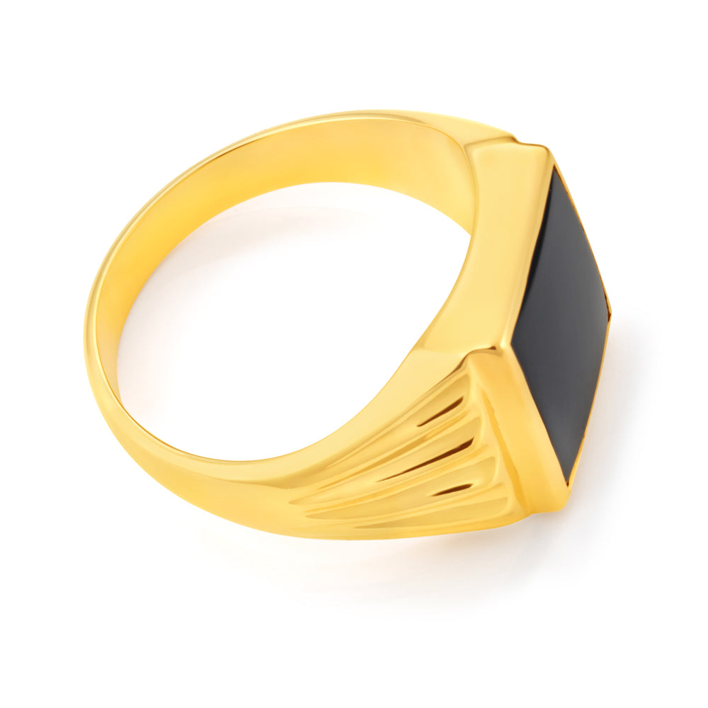 9ct Yellow Gold Onyx 14x12mm Gents Ring