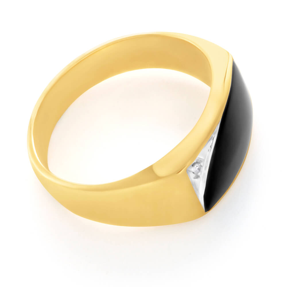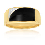 9ct Yellow Gold Onyx and Diamond Gents Ring