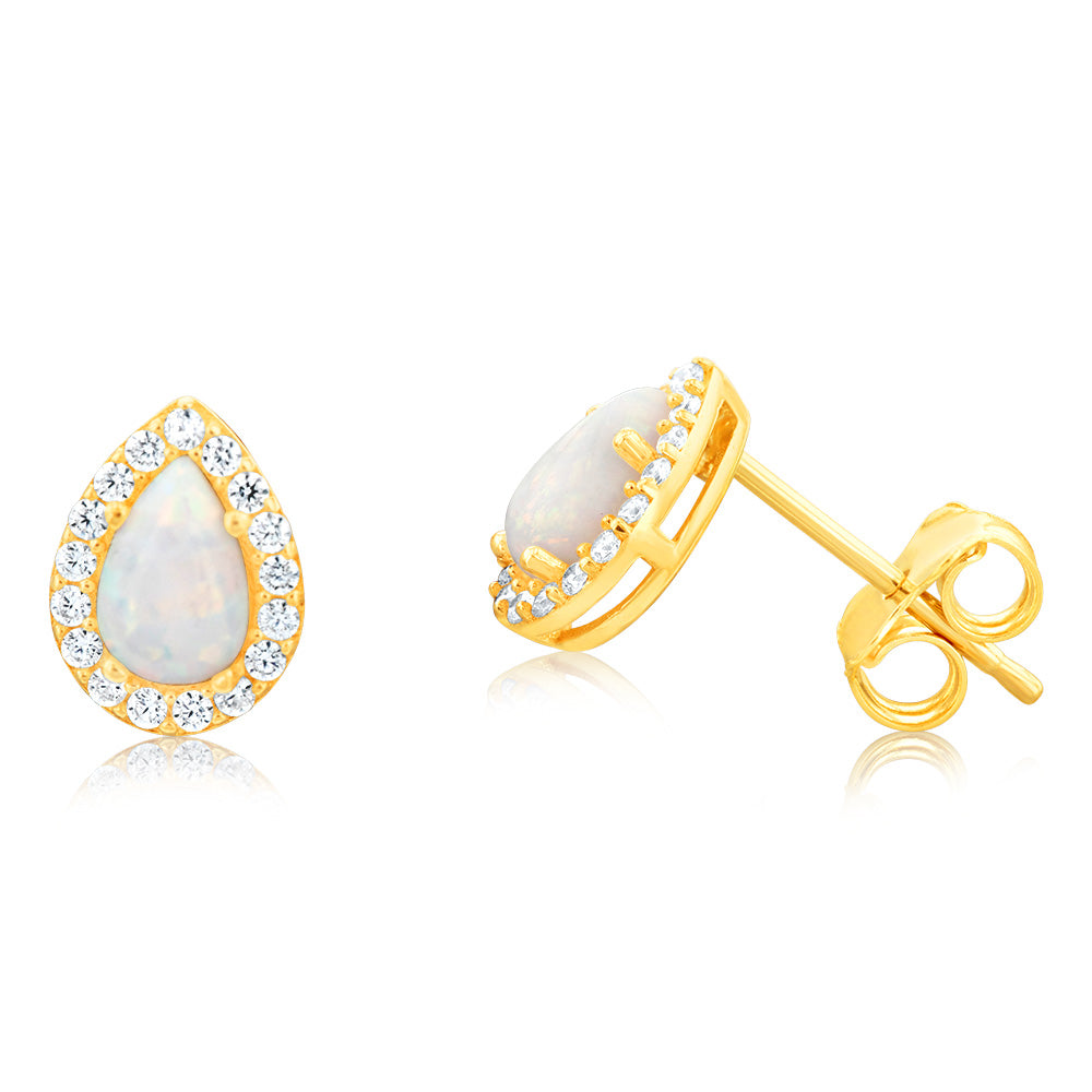 9ct Yellow Gold Opal And Cubic Zirconia Pear Shaped Stud Earring
