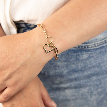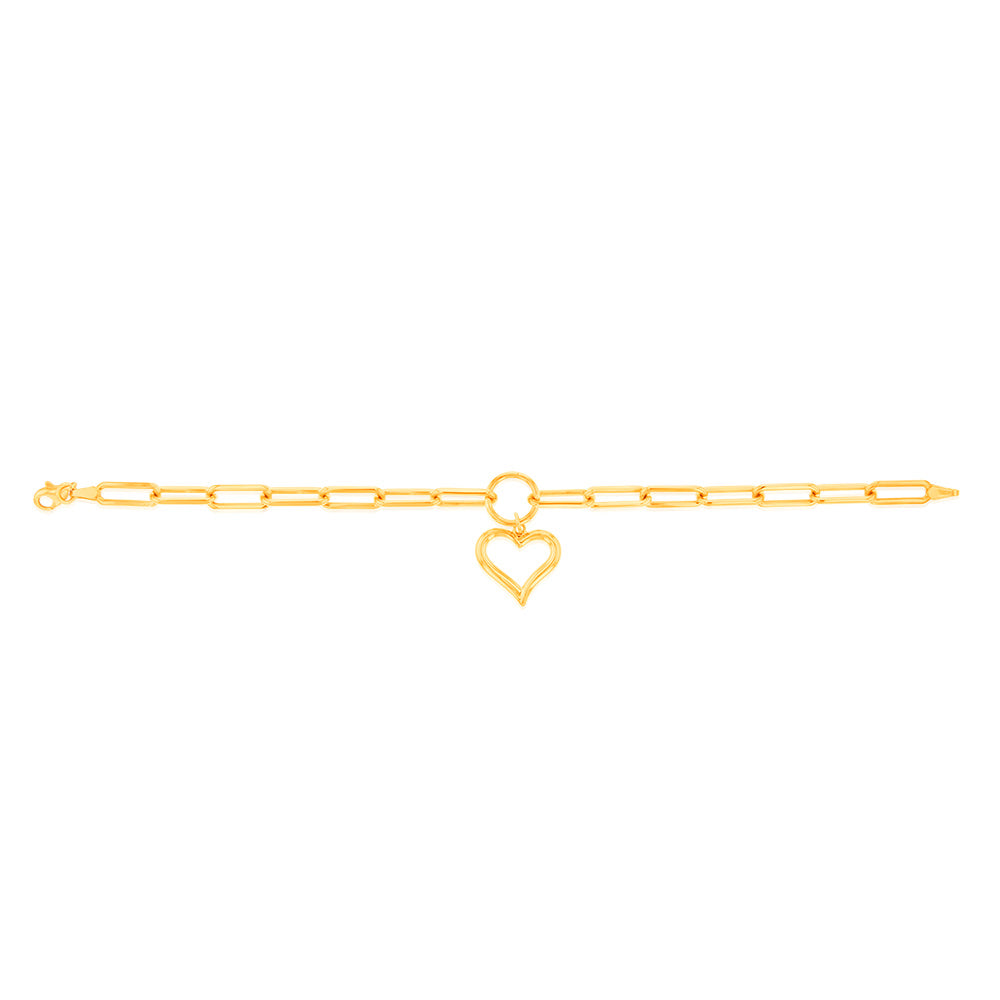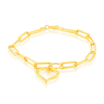 9ct Yellow Gold Open Heart Charm Paperclip 19.1cm Bracelet