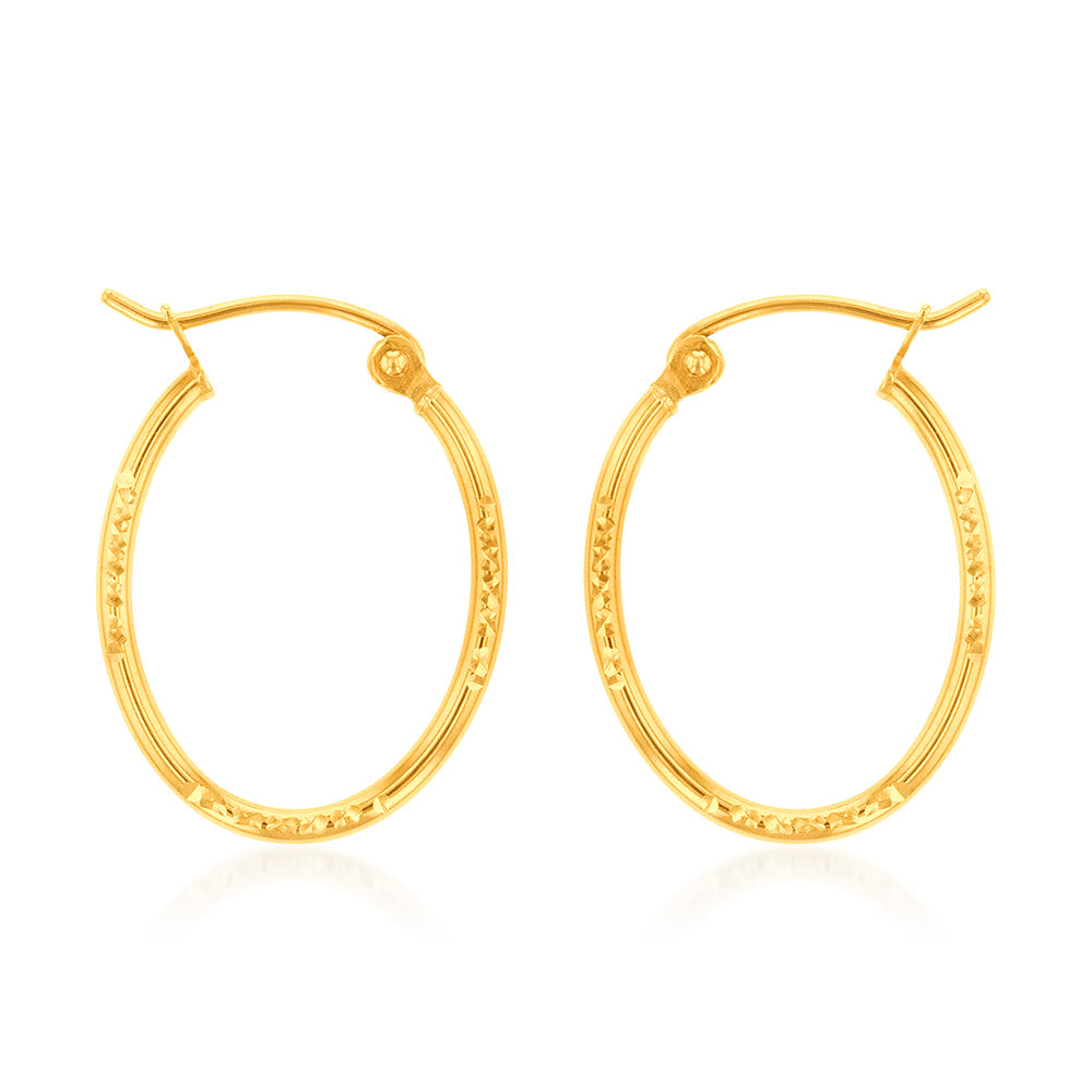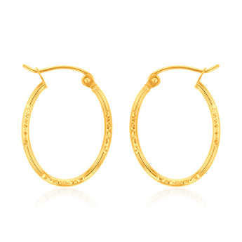 9ct Yellow Gold Oval Diamond Cut Lite Hoop Earrings
