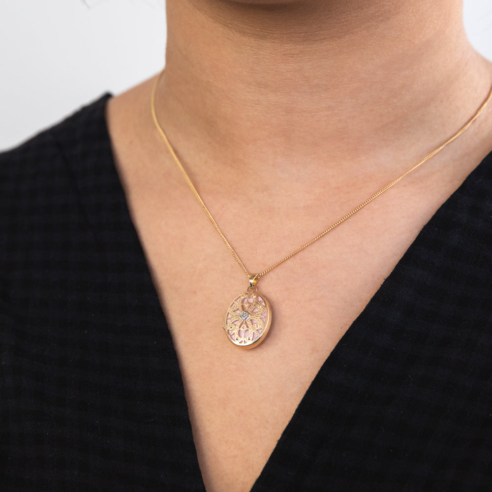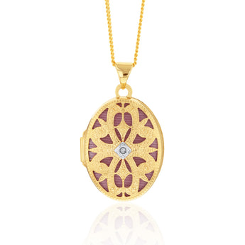 9ct Yellow Gold Oval Diamond Locket Pendant
