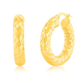 9ct Yellow Gold Patterned 15mm Hoop Earrings