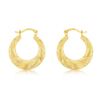 9ct Yellow Gold Patterned Creole Hoop Earrings