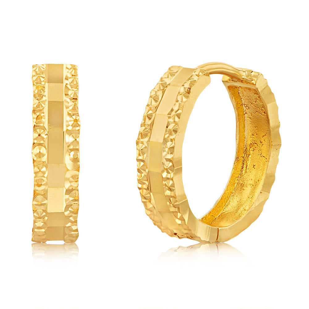 9ct Yellow Gold Patterned Fancy Hoop Earrings