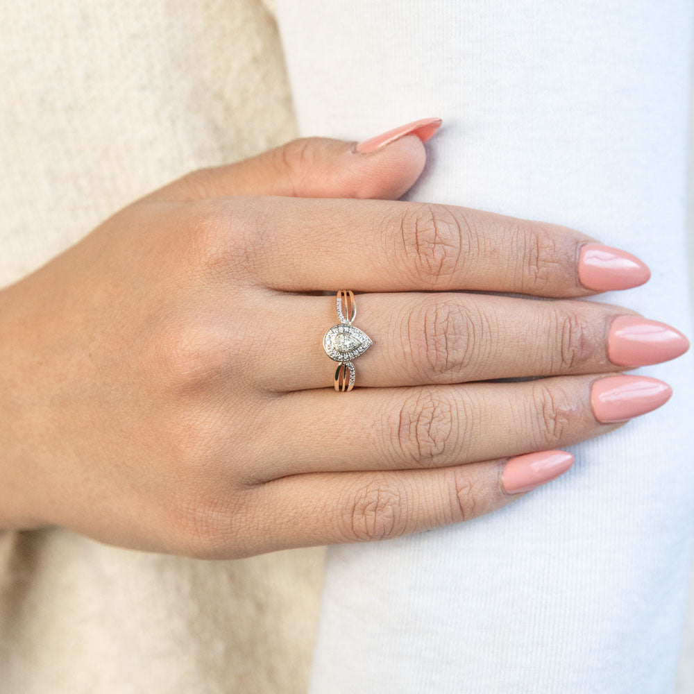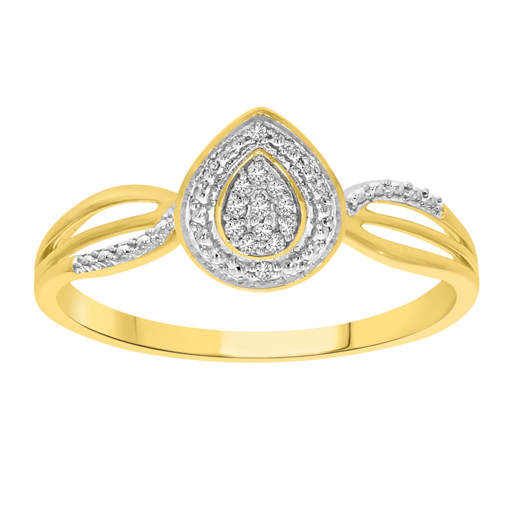 9ct Yellow Gold Pear Shaped Ring with 13 Diamonds
