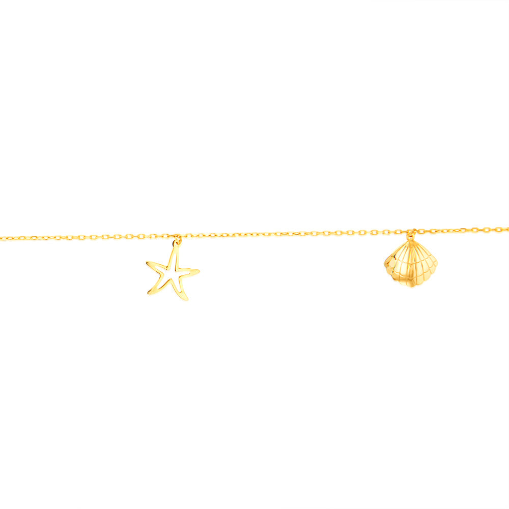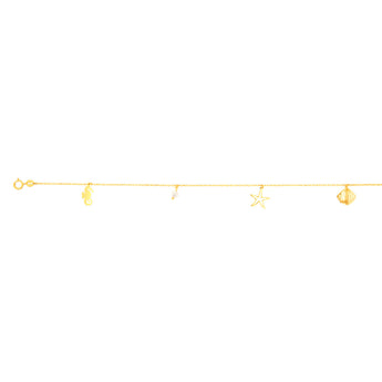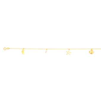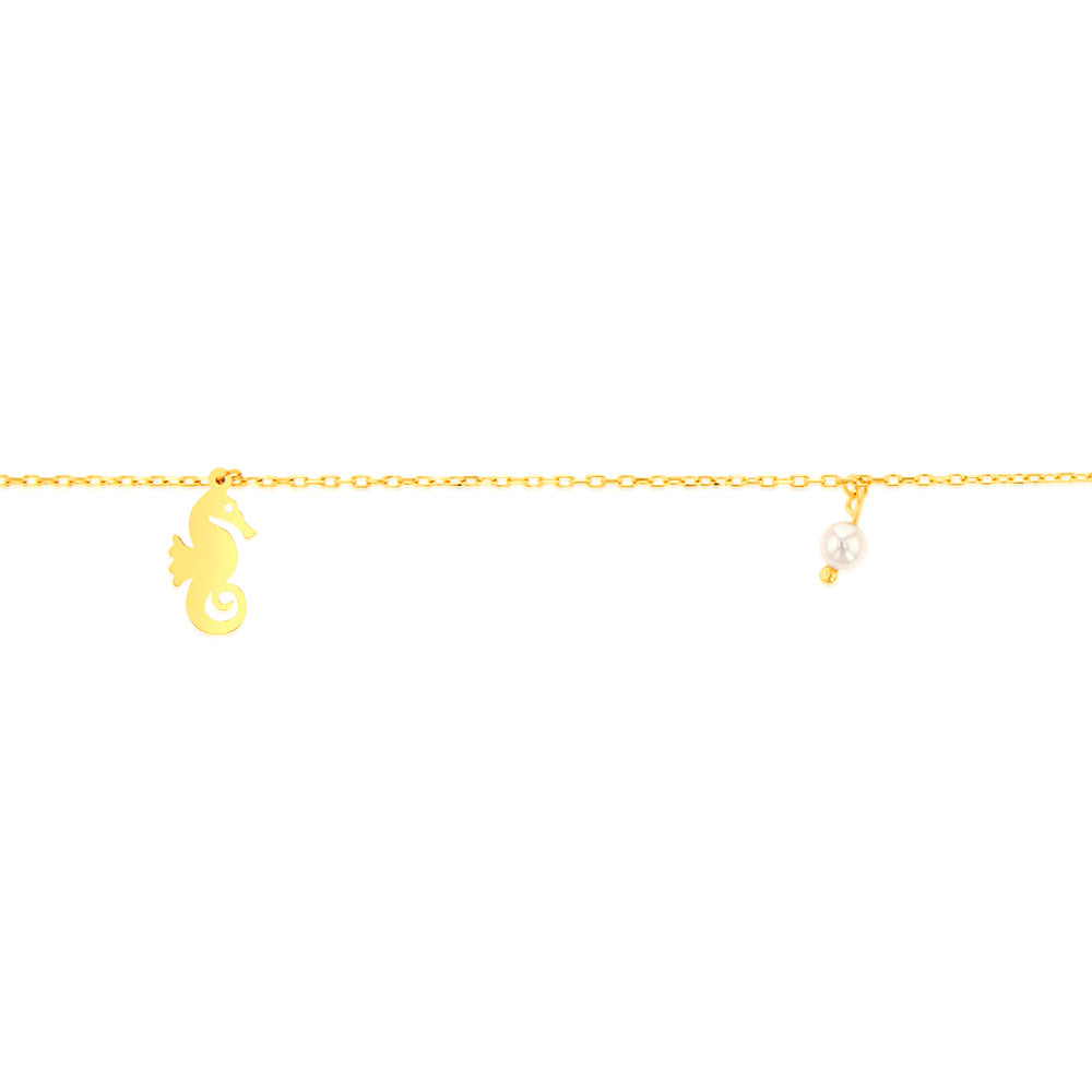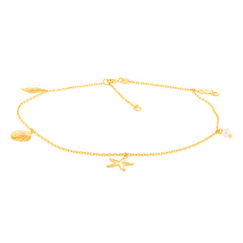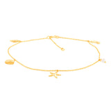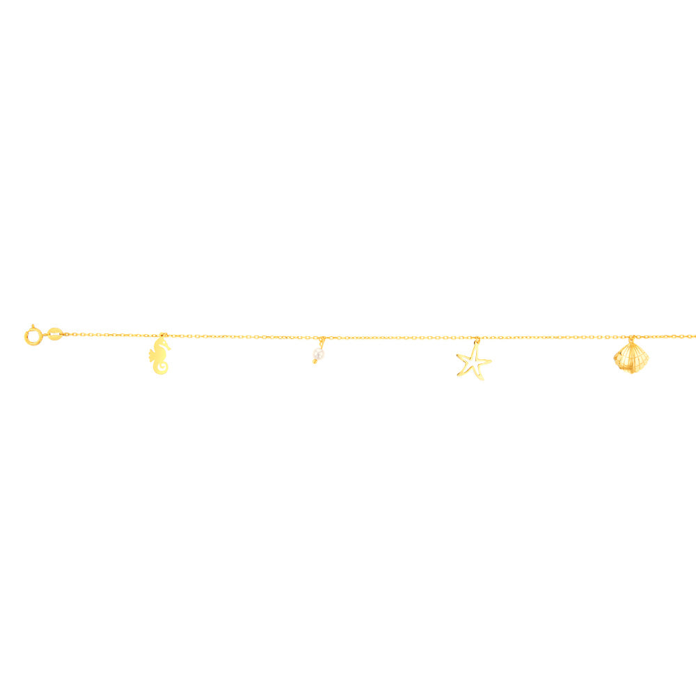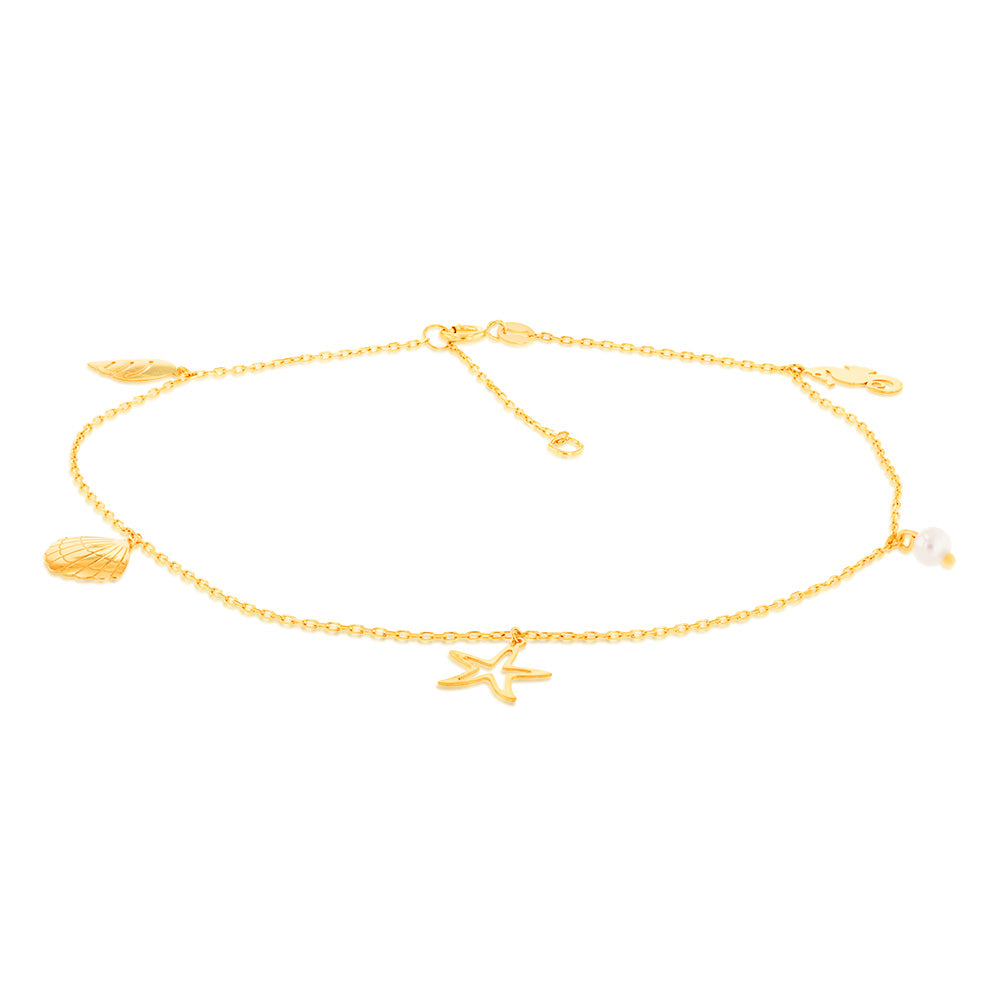 9ct Yellow Gold Pearl And Other Charms On 27cm Anklet
