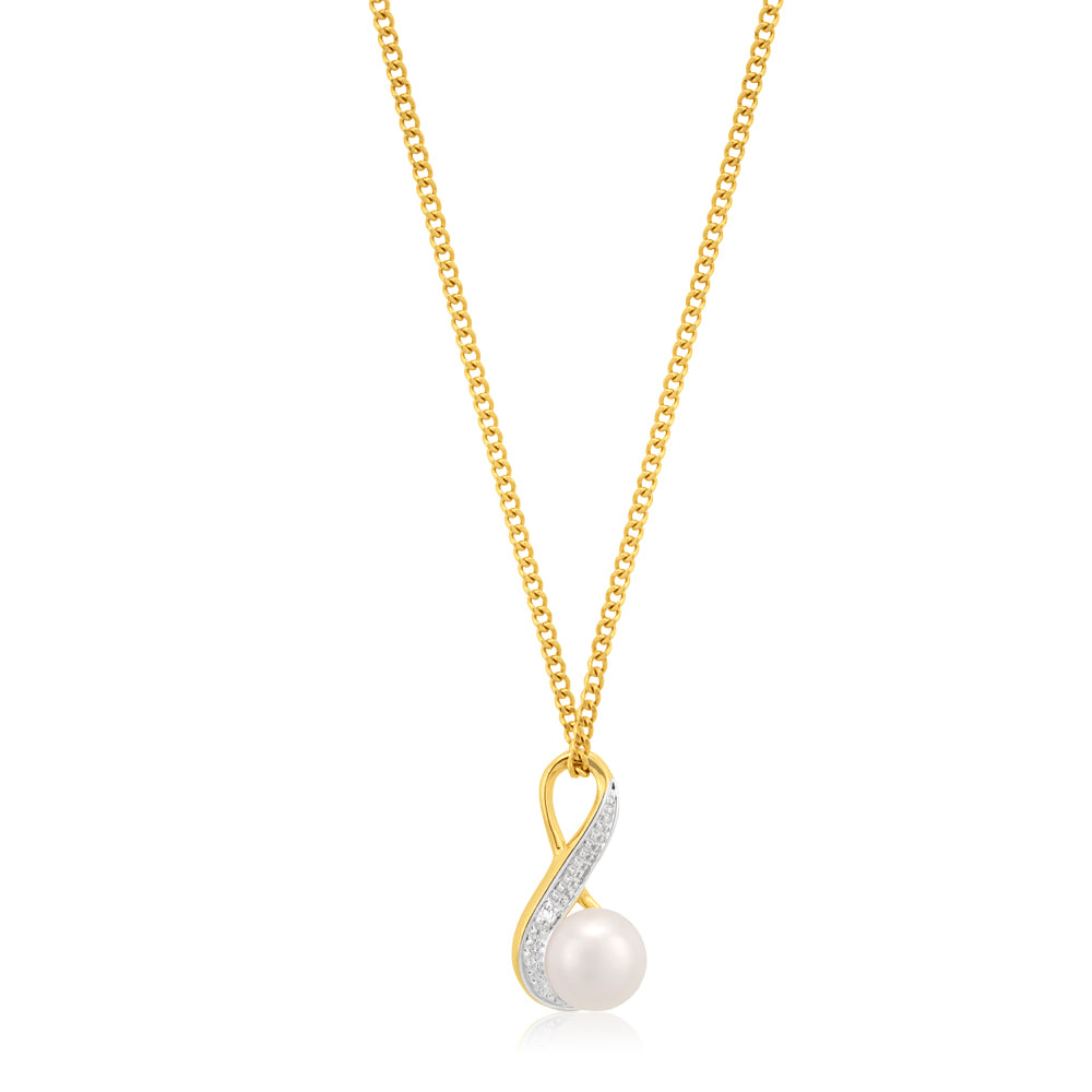 9ct Yellow Gold Pearl & Diamond Pendant