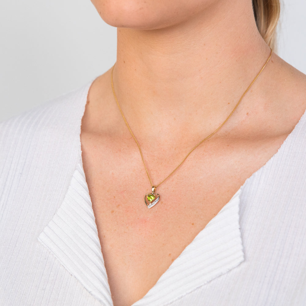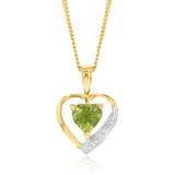 9ct Yellow Gold Peridot and Diamond Heart Pendant