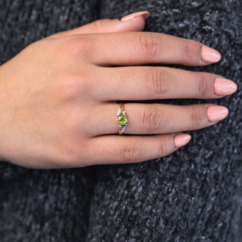 9ct Yellow Gold Peridot and Diamond Heart Ring