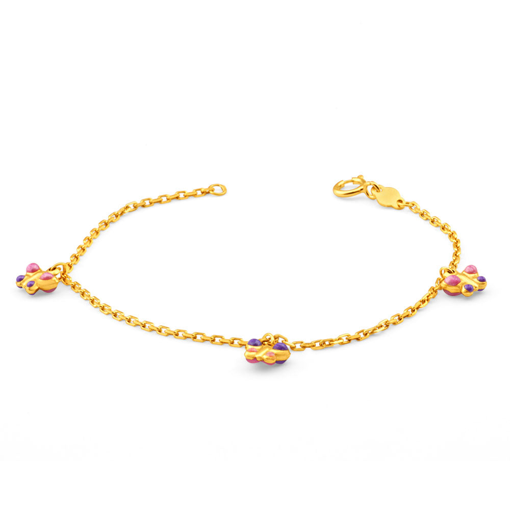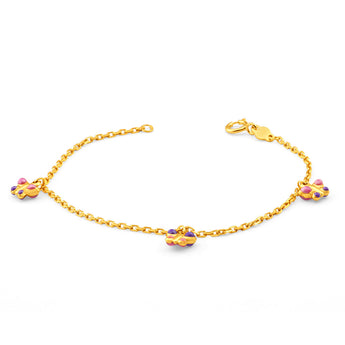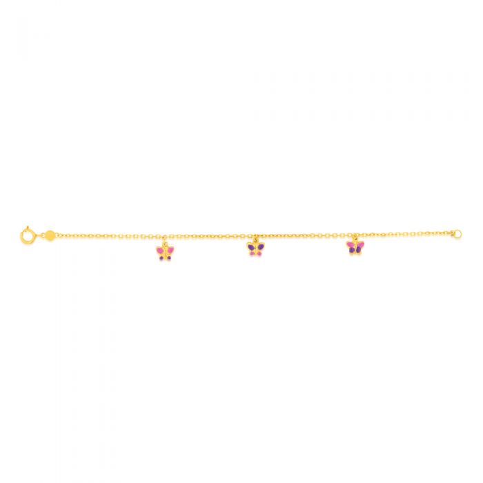 9ct Yellow Gold Pink and Purple Enamel Butterfly Baby 14cm Bracelet