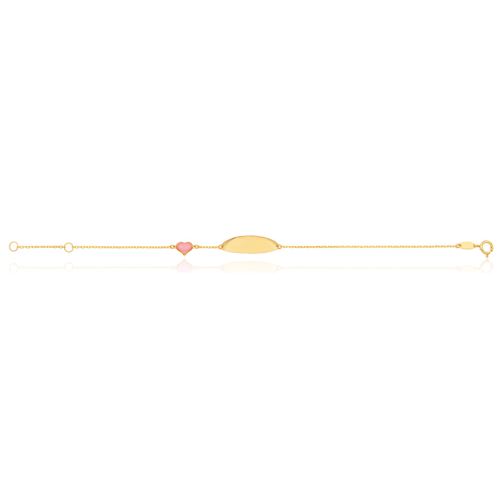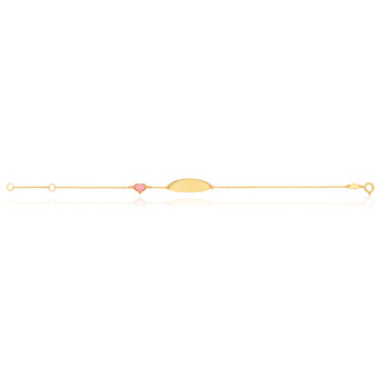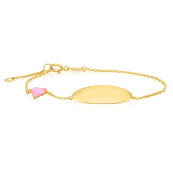 9ct Yellow Gold Pink Heart Charm 17cm ID Bracelet