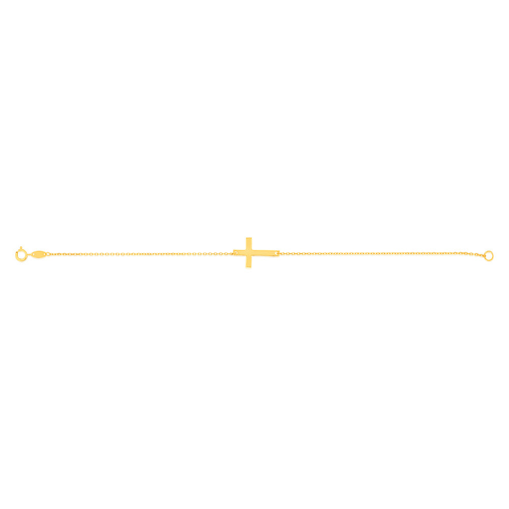 9ct Yellow Gold Plain Cross 19.1cm Bracelet