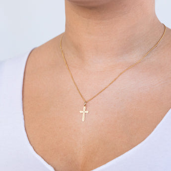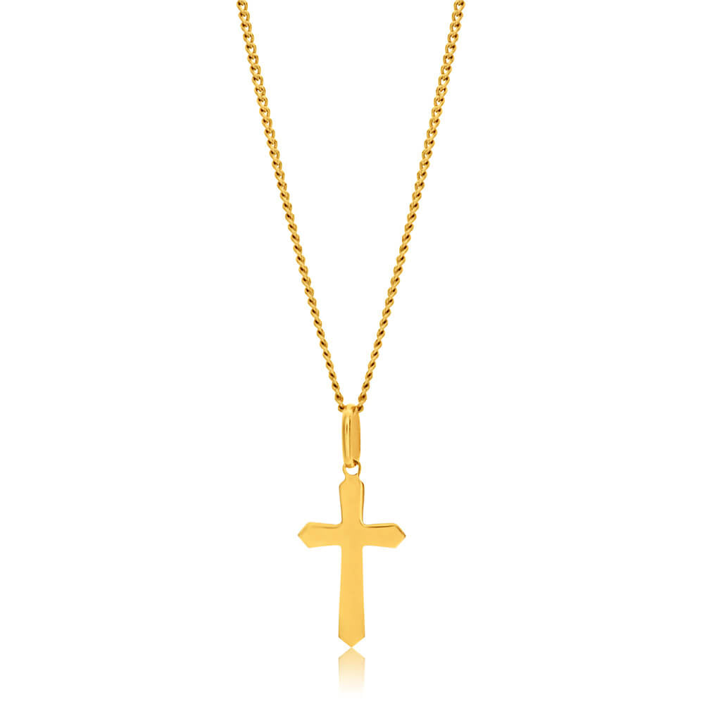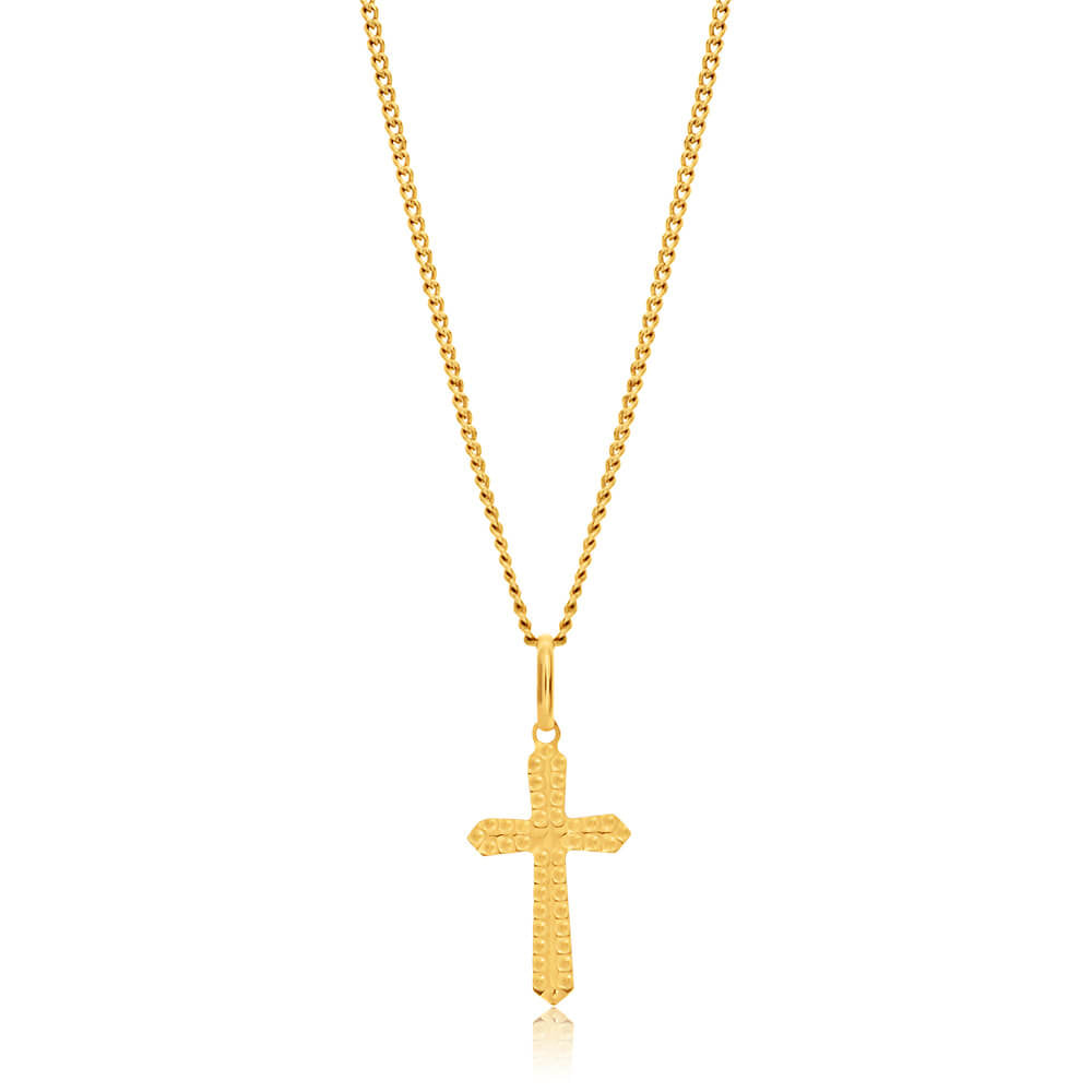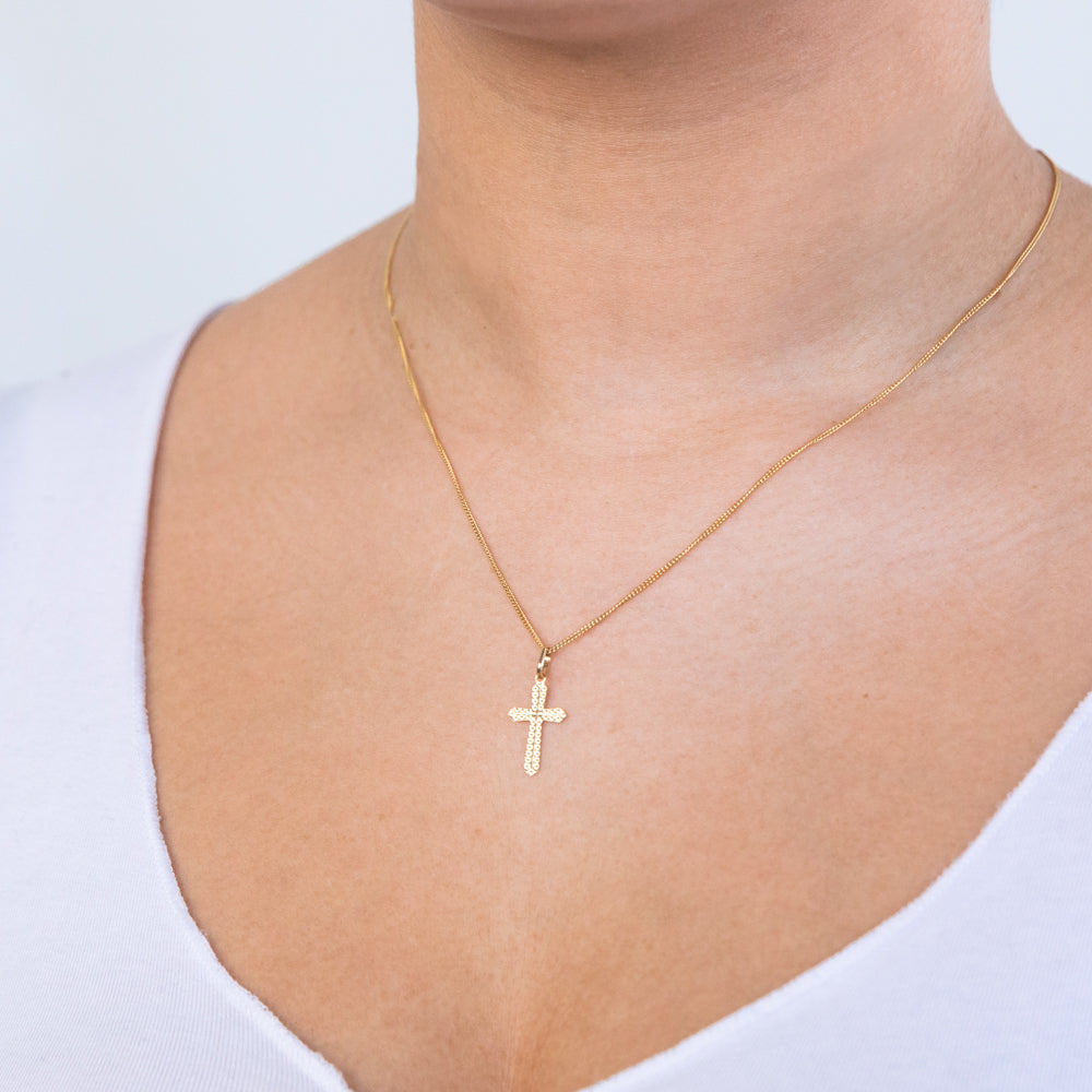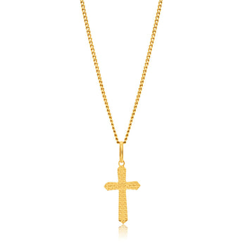 9ct Yellow Gold Plain & Diamond Cut 17mm Cross Pendant