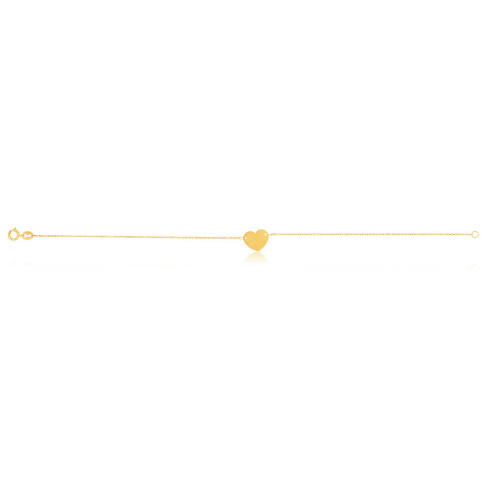 9ct Yellow Gold Plain Flat Heart Charm on 18cm Bracelet