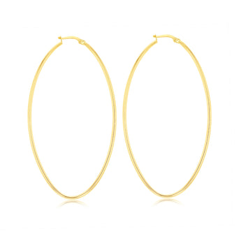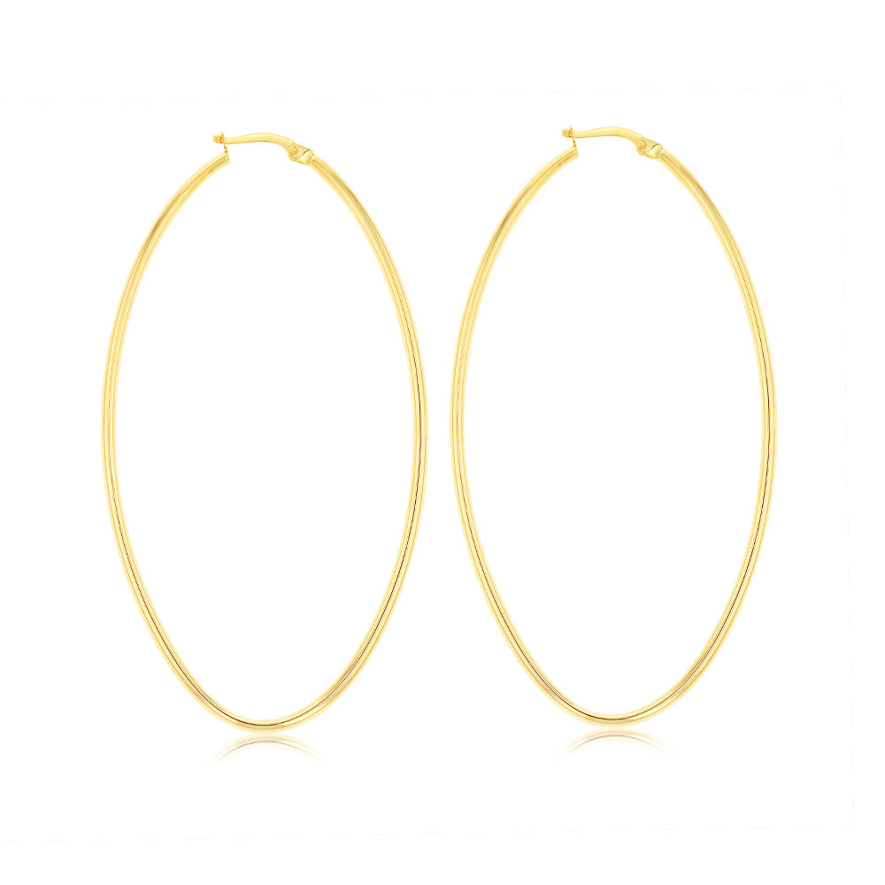 9ct Yellow Gold Plain Large Oval Hoop Earrings