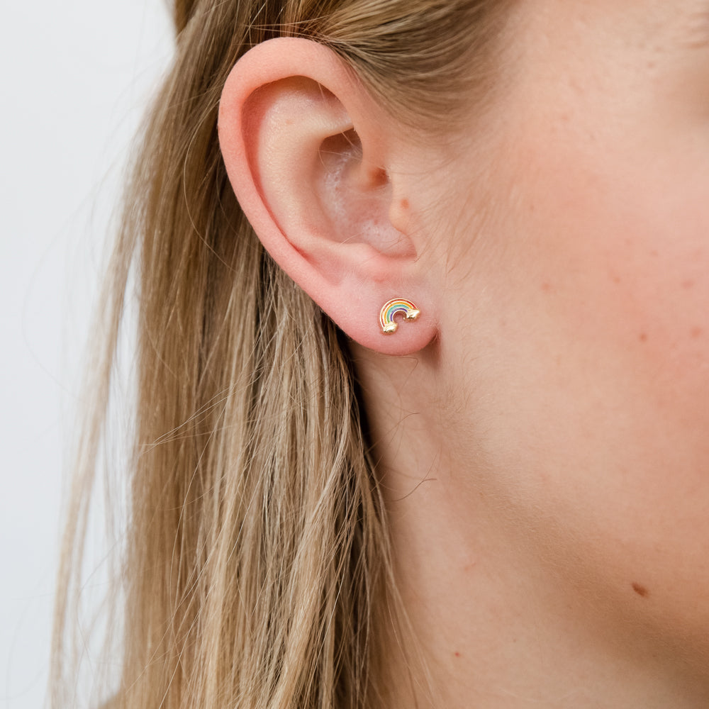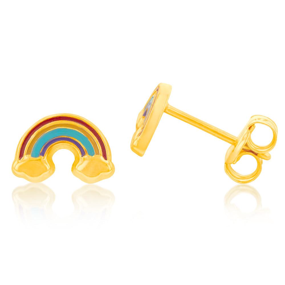 9ct Yellow Gold Rainbow Enamel Stud Earrings