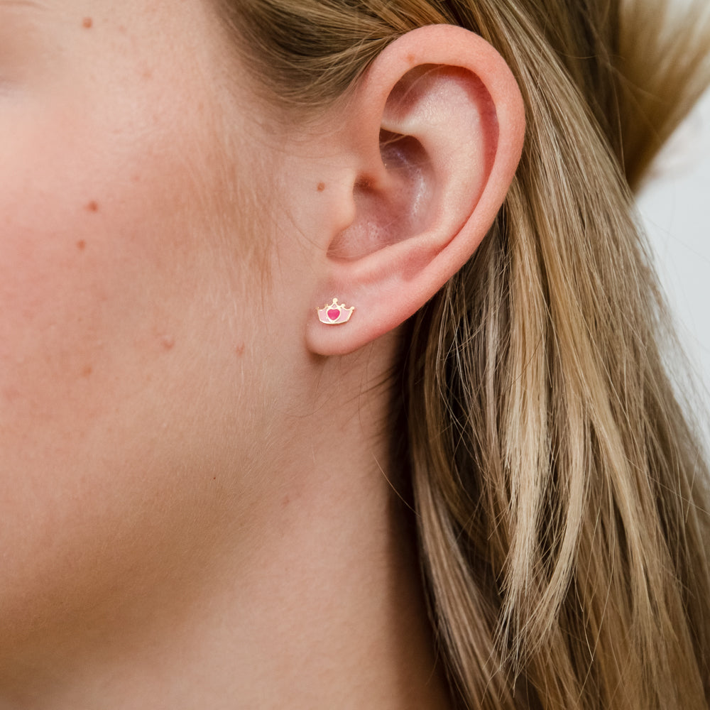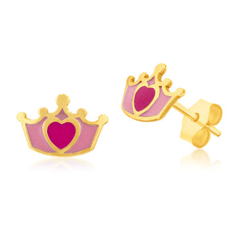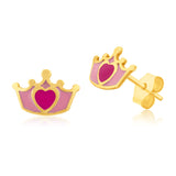 9ct Yellow Gold Red Heart On Crown Stud Earrings