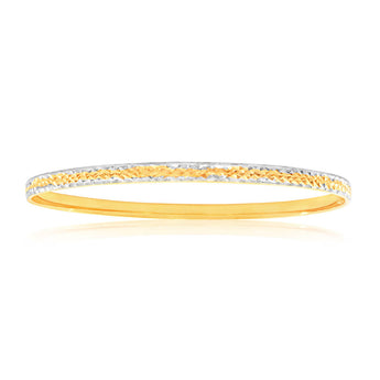 9ct Yellow Gold & Rhodium Gold Bangle with diamond cutting