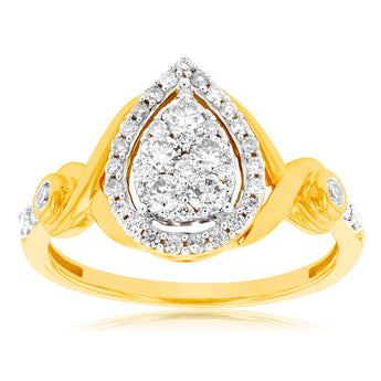9ct Yellow Gold Ring with 1/2 Carat of Diamonds