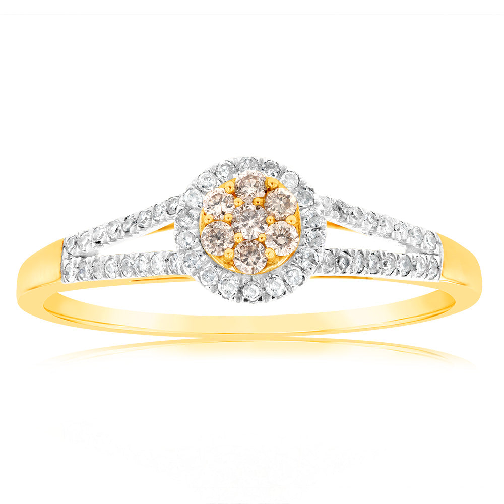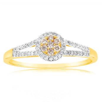 9ct Yellow Gold Ring with 1/4 Carat of Diamonds
