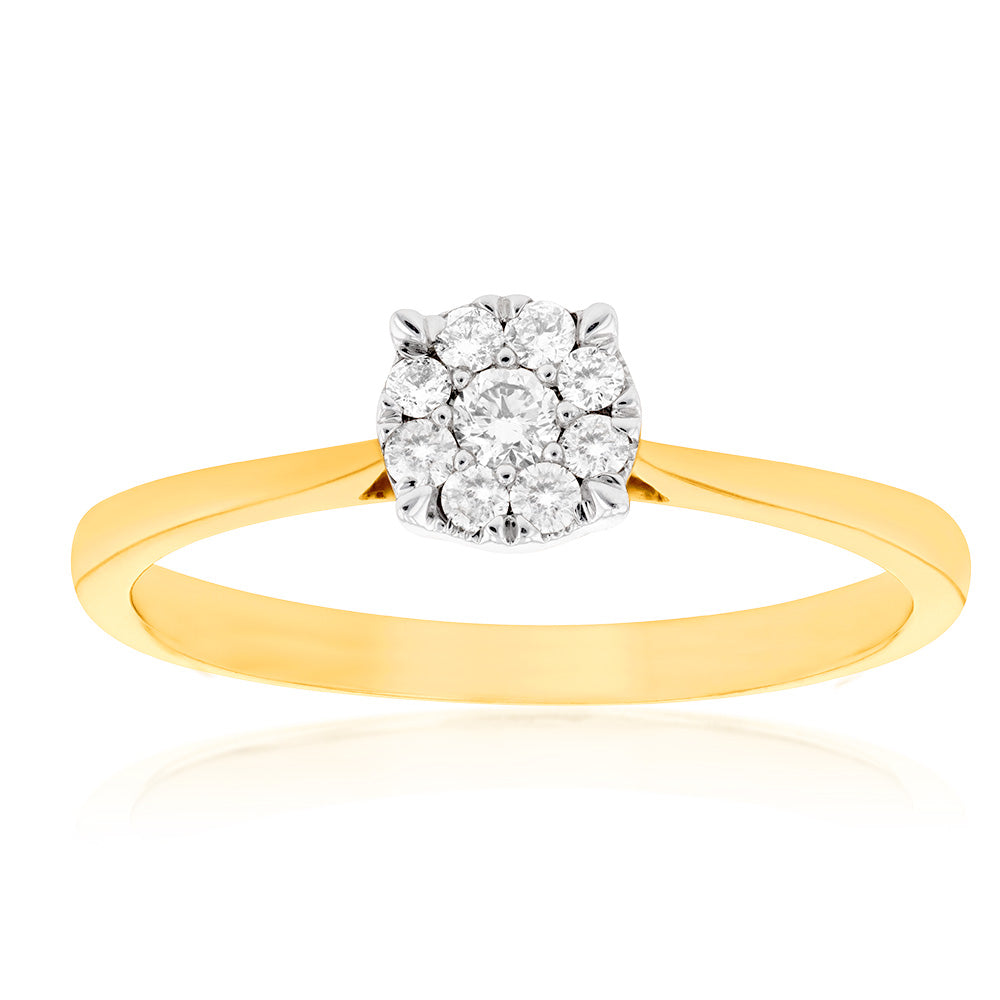 9ct Yellow Gold Ring With 1/5 Carats Of Diamonds and Infinity Detail on Side Profile