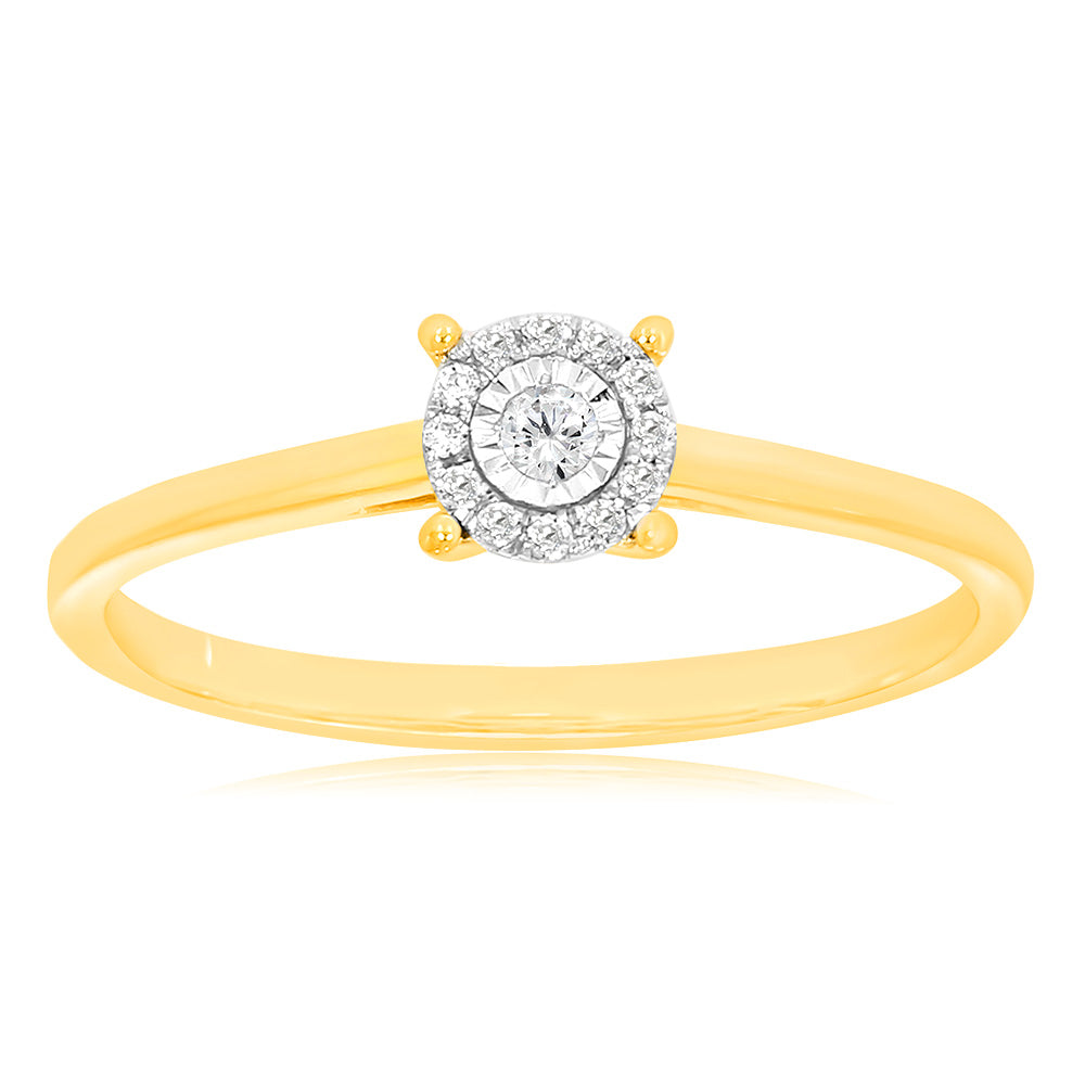 9ct Yellow Gold Ring with 13 Brilliant Diamonds