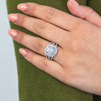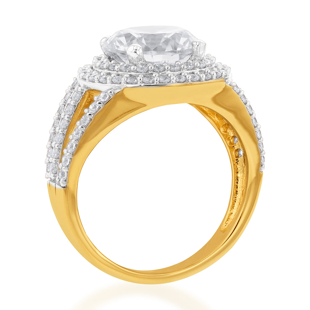 9ct Yellow Gold Round Double Halo Zirconia Split Band Ring