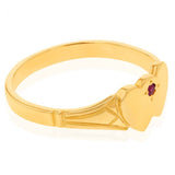 9ct Yellow Gold Ruby 2Heart Signet Ring Size L